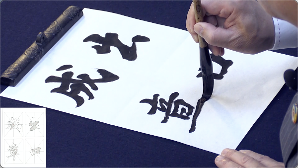 《前赤壁赋》是名传千古的散文,也是被董其昌推为《东坡之<兰亭>》的书法名作,由“宋四家”之一的苏轼撰写?!肚俺啾诟场房聿┑溲诺耐饷?、内敛清健的筋骨、丰润深邃的气格、明快虚灵的意蕴,使这件作品在中国书法史上占有了极为独特的地位。无往不收,不留任何痕迹,笔中意圆,节奏缓逸,结体庄穆,气象雍裕,藏巧于拙,行列分明,星罗棋布,风神萧散,气韵生动,所谓无为而动,同自然而功,一切都表现得那么稳健自然,其意趣境界不在《寒衣诗帖》之下。课程共为4节。 第一课,教师首先系统讲解《前赤壁赋》的时代背景及艺术层面上的用笔、结字、章法的理论知识。其次讲解《前赤壁赋》的用笔,特点是无往不收、不留痕迹、笔中意圆。最后,教师用四字熟语示范点、横竖等用笔的特点,示范结束后布置作业。 第二课,教师首先批改学生作业,总结比较容易出现的问题。其次,解读并示范《前赤壁赋》组成文字结构的要领,其结字行列分明、星罗棋布、气韵生动。最后,教师用四字熟语分析它的正斜结构、长短结构,示范结束后布置作业。 第三课,教师首先批改学生练习及作业,总结比较容易出现的问题。完成批改后,教师用大、中、小毛笔来示范并解读《前赤壁赋》的章法学习,学习扇面、镜面、斗方、条幅的创作,创作演示结束后,布置作业。 第四课,教师先批改学生练习及作业,总结比较容易出现的问题。完成批改后,教师用大笔、特大号笔来示范二八尺的横批和四尺中堂。创作结束后,对今后的书法学习进行探讨。