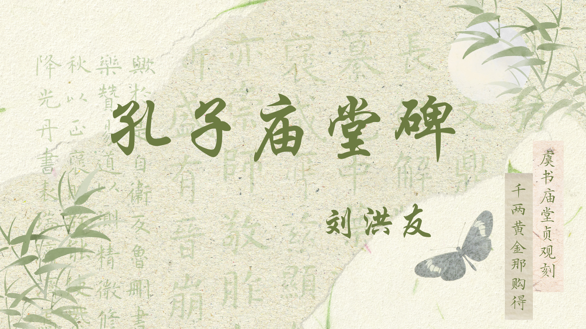 《孔子庙堂碑》全称《孔夫子庙堂之碑》为唐虞世南撰书,碑文记述唐高祖李渊于武德九年(626年)立孔子二十三孙孔德伦为褒圣侯及重修孔庙之事,唐太宗贞观七年(633年)刻成?!犊鬃用硖帽芬栽脖饰?,行笔雅静委婉,外柔内刚,端严静穆,横平竖直,平淡中见精神,温雅中含遗气。戈钩与捺纵逸奔放,尤其是戈钩,在唐最为出名,人称“虞戈”。虞世南(558-638年)与欧阳询、薛稷、褚遂良合成“初唐四家”,他学术渊博,论议持正,得到唐太宗极大的赏识。虞世南为智永和尚的学生,是王羲之书法杰出的继承者和发扬者,又以中和之美为典范,又以自己的灵性,在戈钩和捺中展现出其独特的风流与天趣,并以柔而尤刚的表现方式展现了中国虚灵之美的最高典范。