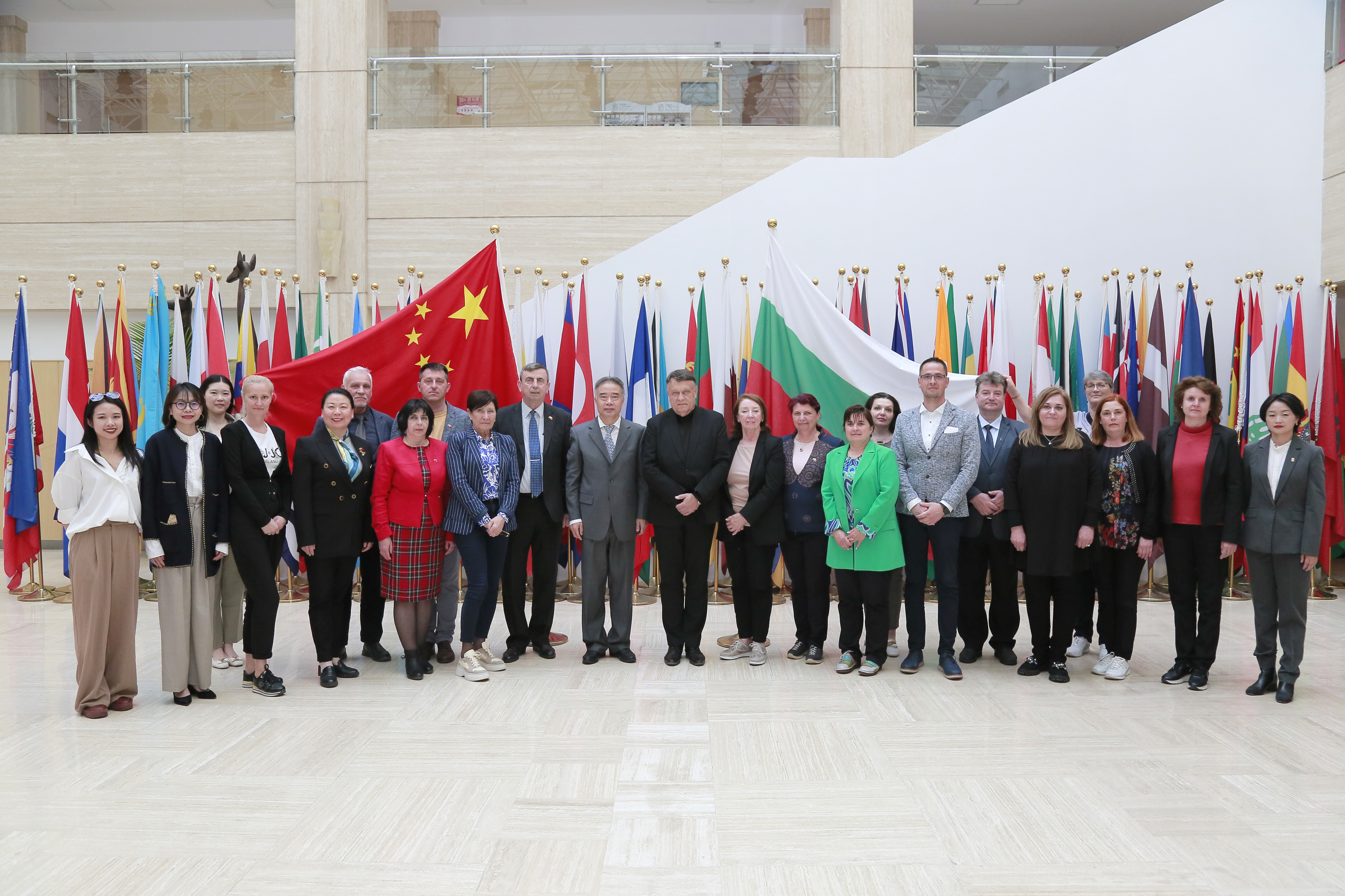 2024年4月11日,由索非亚“圣·克里门特·奥赫里德斯基”大学校长格奥尔基·瓦尔切夫率领的保加利亚校长团一行18人访问基金会,赵灵山秘书长会见代表团,双方就保加利亚索非亚孔子学院发展进行工作交流。
